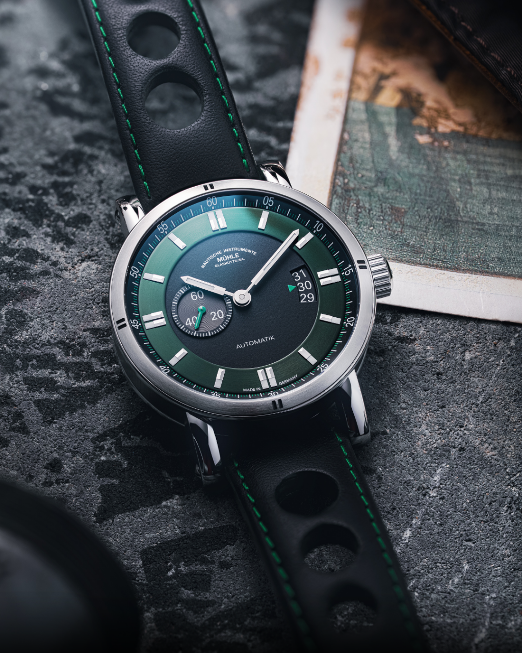Mit der Teutonia Sport II von Mühle Glashütte hält bei dir ein Zeitmesser Einzug, der die feine englische Art auf besonders elegante Weise interpretiert. Inspiriert vom unvergesslichen Grün der britischen Insel und der legendären Karosseriefarbe klassischer Sportwagen, greift ihr Zifferblatt die Ästhetik von British Racing Green auf und verbindet sie mit sportlicher Klarheit und funktionaler Präzision.